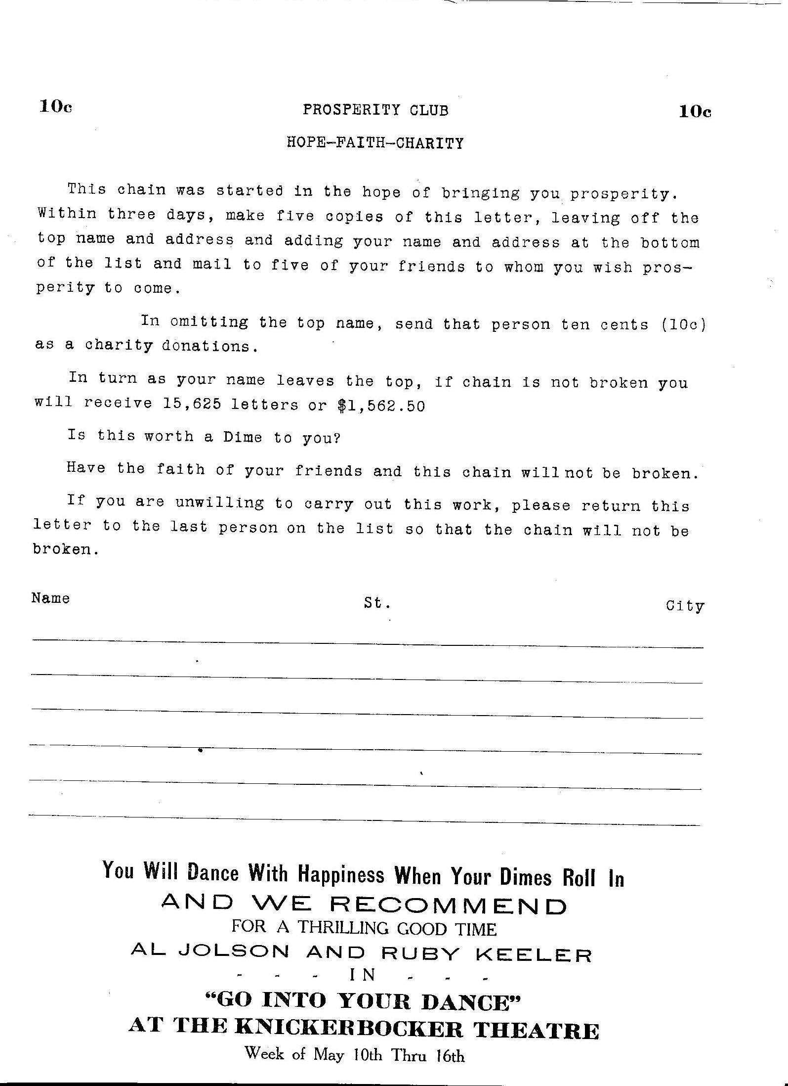 2,000 copies of this chain letter, with the ad for the movie "Go